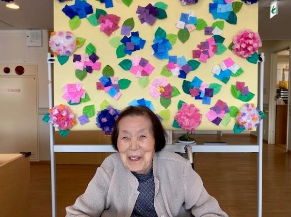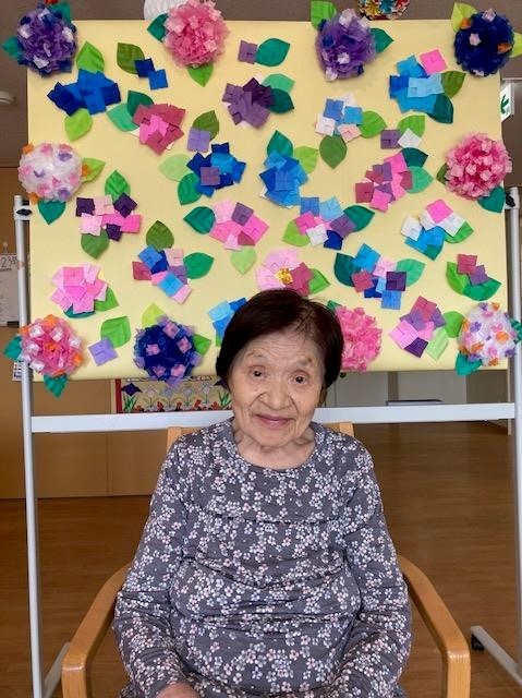 沖縄県や鹿児島県奄美地方が梅雨明けし、川崎市もいよいよ梅雨本番を迎えましたねヾ(•ω•`)o あいにくの天候が続いていますが、皆様いかがお過ごしでしょうか? 職員・ご利用者様と一緒に作りました「アジサイのお飾り」の前で記念撮影しました(^人^) ~