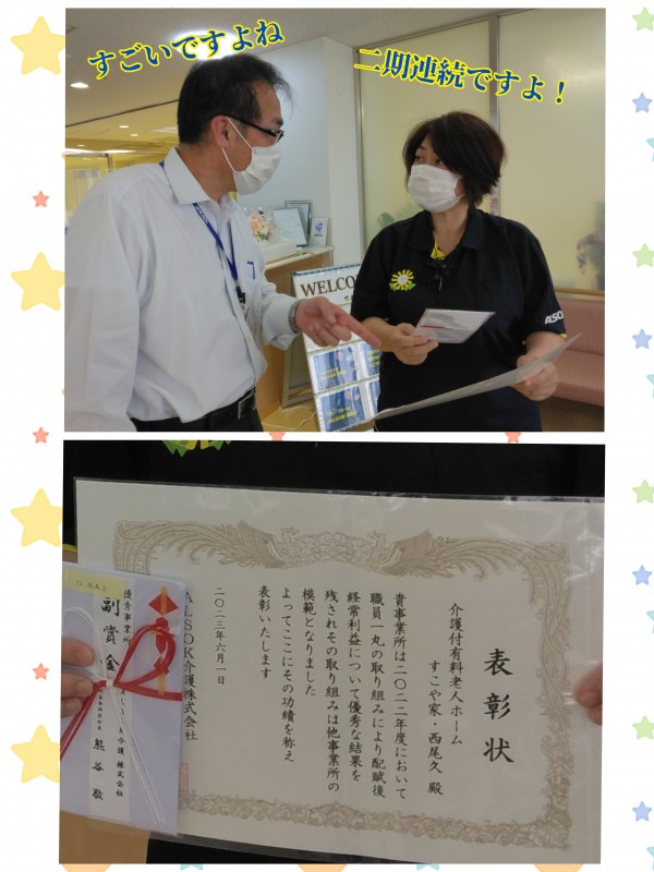 ご入居者様がいらっしゃるからこその表彰です。