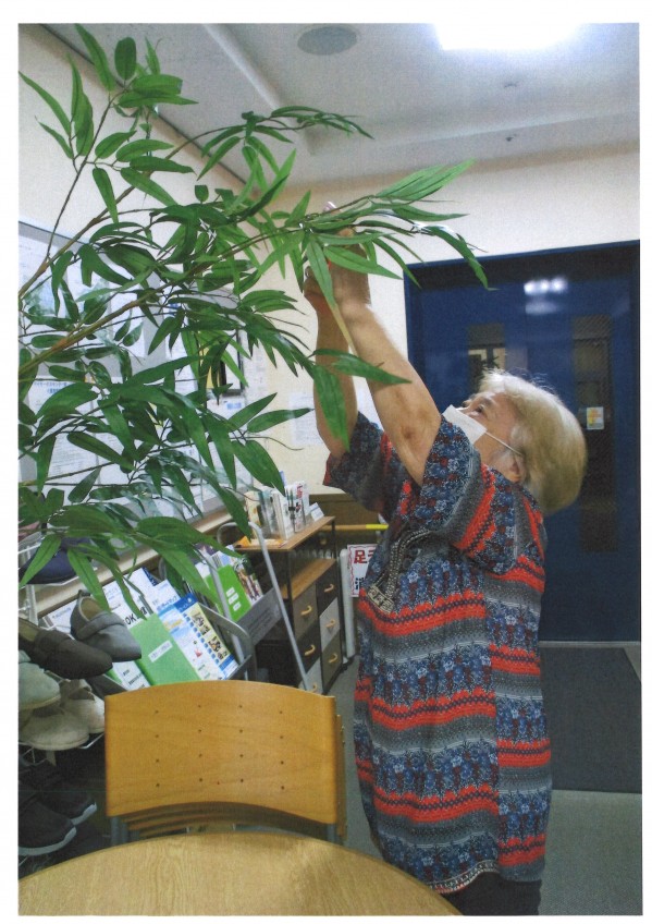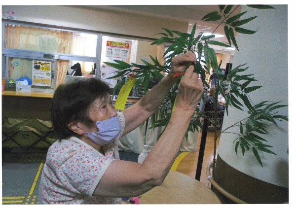 七夕の笹に付ける飾りや短冊を書いていただきました。