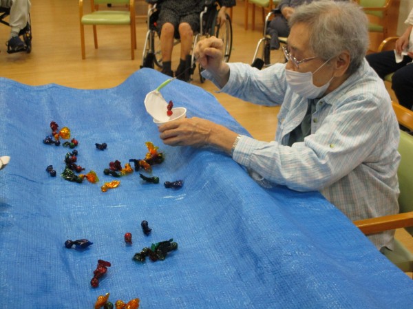 こんにちは、デイサービスセンター遊・西東京です。今日の運動レクレーションは『金魚すくい』です!