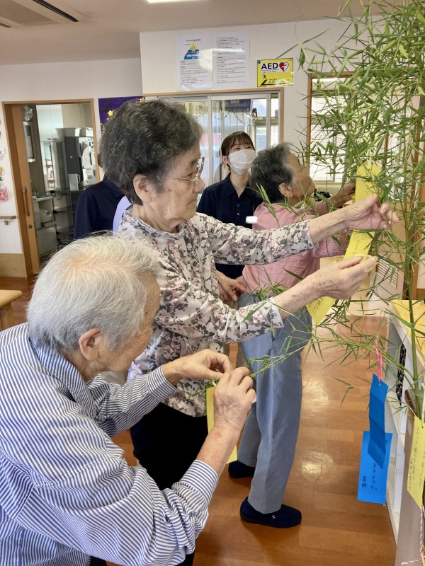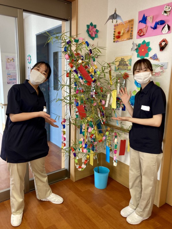 来ていただいている看護実習生さんと一緒に笹の葉の飾り付けをしました!