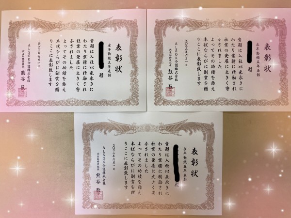 今回は私を含め、3人の職員が表彰されました(*ノωノ)