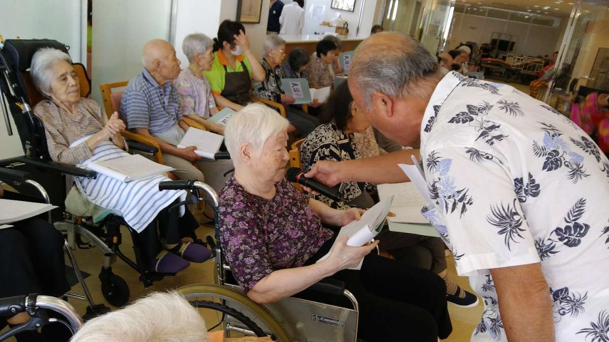 『一生懸命、歌の本配って~、みんなにね~、えらいわね~』