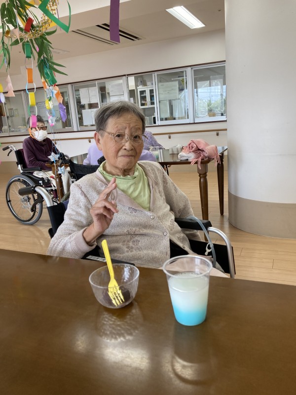 ★☆七夕手作りおやつ作りレクリエーション「水ようかん」③階記念撮影2023年(^^✨