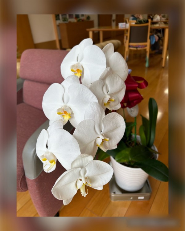 入居者様のご家族でいつも綺麗なお花を持ってきてくれるT様にちょっとご指導ただいて、入居者のY様が愛情を注いでお世話をしてくれたのが実りました。