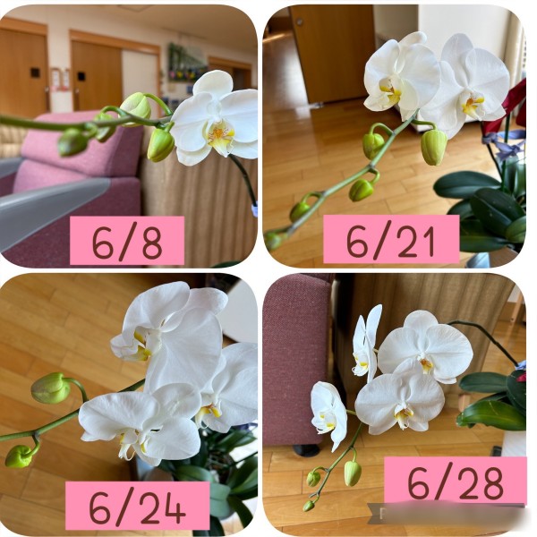 今日は皆さまにご報告があります。なんと・・・2月に花を咲かせて私たちをビックリさせたあの胡蝶蘭が再び綺麗な花を咲かせてくれました(・∀・)イイネ!!