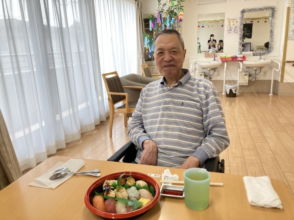 施設では、あまり食べれない特別に握り寿司が提供されました。