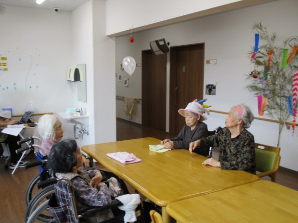 風船バレー遊びを行いました( ^ω^)・・・ 風船だから柔らかいから中々降りてこないね!! 思うようにいかないよ? 難しいわ(笑)
