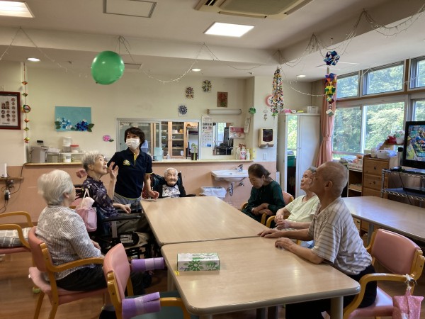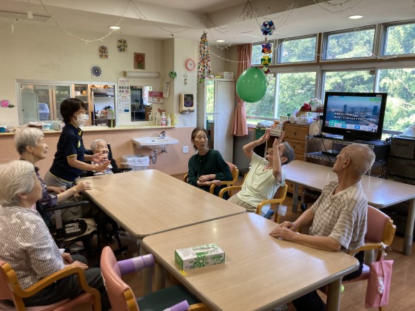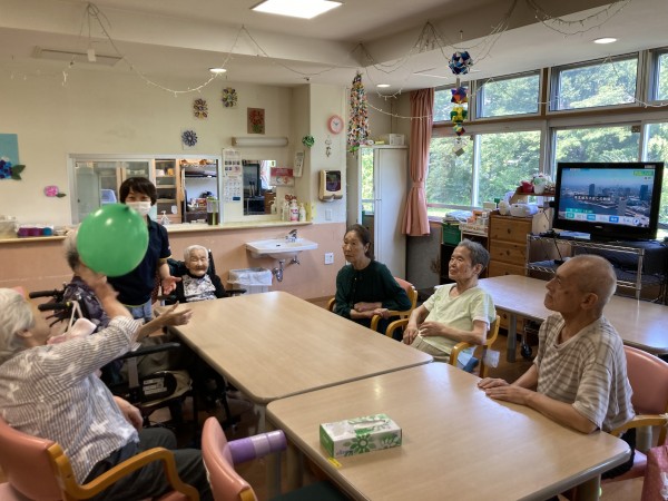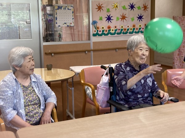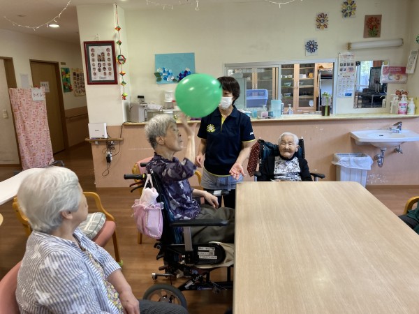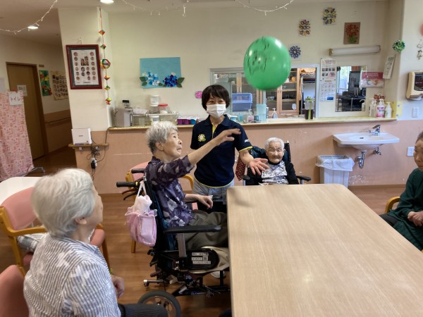 日中帯のレク(風船バレー)の様子を少しばかりですがお伝えしたいと思います。