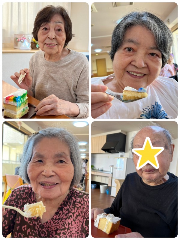ホーム長が自ら感謝を込めて切り分け、皆様へお配りしました。