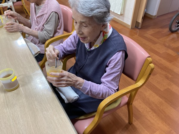 グッドタイミングな本日の手作りスイーツはひんやり冷たいミカンのジュレでした!