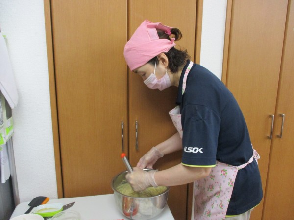 今回のおやつイベントはバナナをたっぷり使用した「チョコバナナケーキ」です。