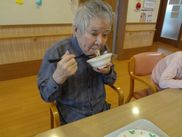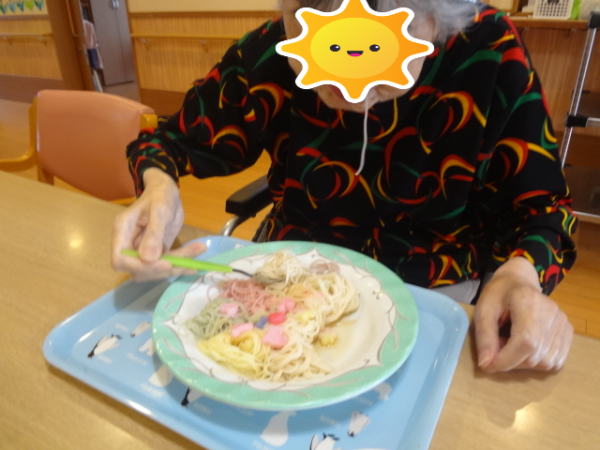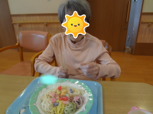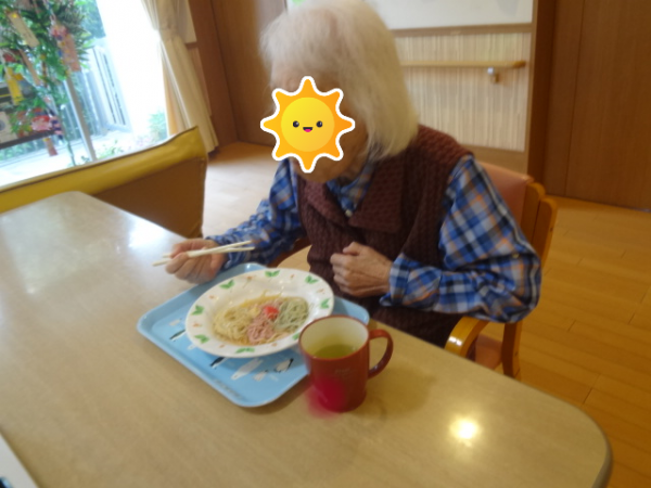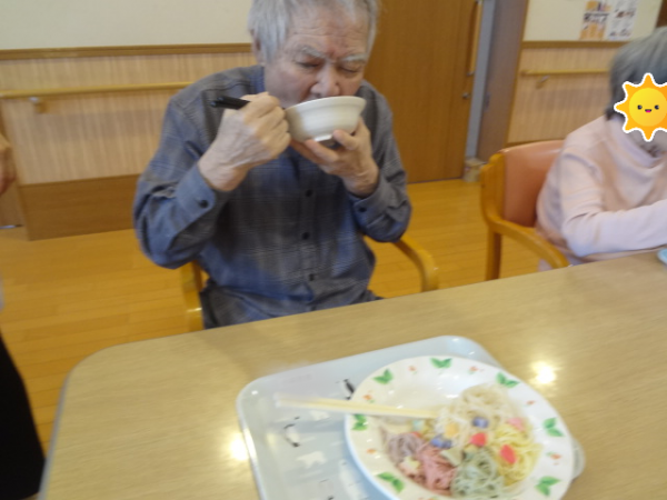 今回は「七夕そうめん」を召し上がっておられるご様子をご覧ください(^^)/