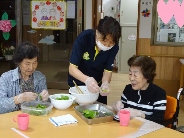 「いつも美味しい物あ・り・が・と」「自分達で作ると違うね」「どれどれ、、、、」