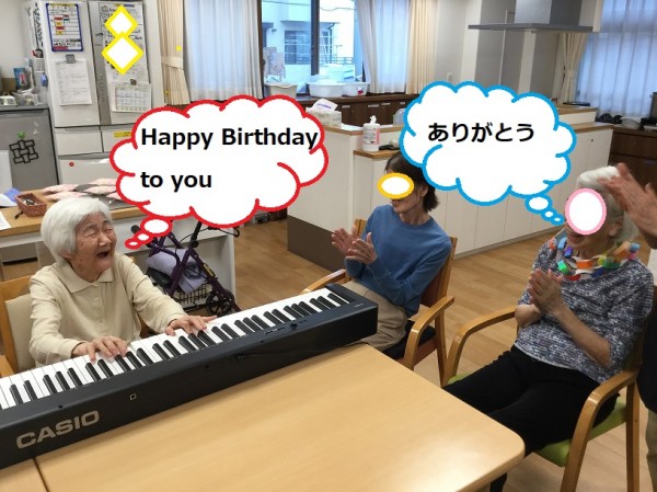 T様のピアノ伴奏に合わせて「ハッピーバースデートゥーユー」とY様のお祝いをしました♡