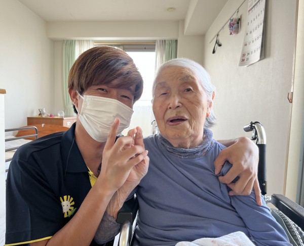 ひょっこり顔を出したケアスタッフに「わざわざ来てくれたの?」