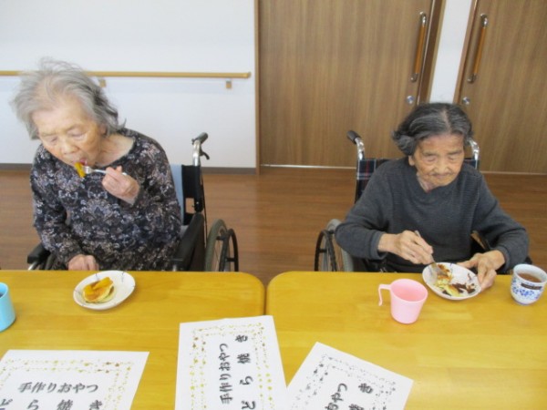手作りどら焼きのおやつを召し上がられています( ^ω^)・・・ 今日のおやつは何かしら~? 美味しそうですね~?