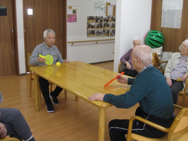 こんにちは! グループホームみんなの家・あきがせの介護ブログです! よろしくお願いいたします。 今日は室内でテーブルテニスで遊びました。そのご様子をお知らせいたします