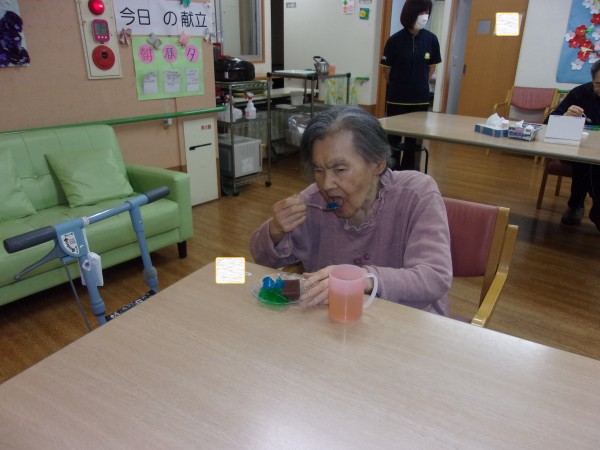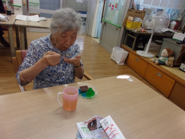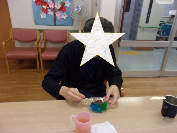 おやつに、水羊羹をお出しすると、「おぉ~今日はスペシャルデザートだね~♪」とニコニコされてテーブルに来られた入居者様もおられました♪