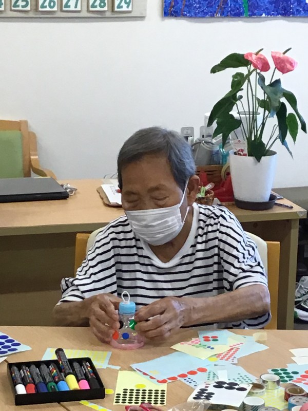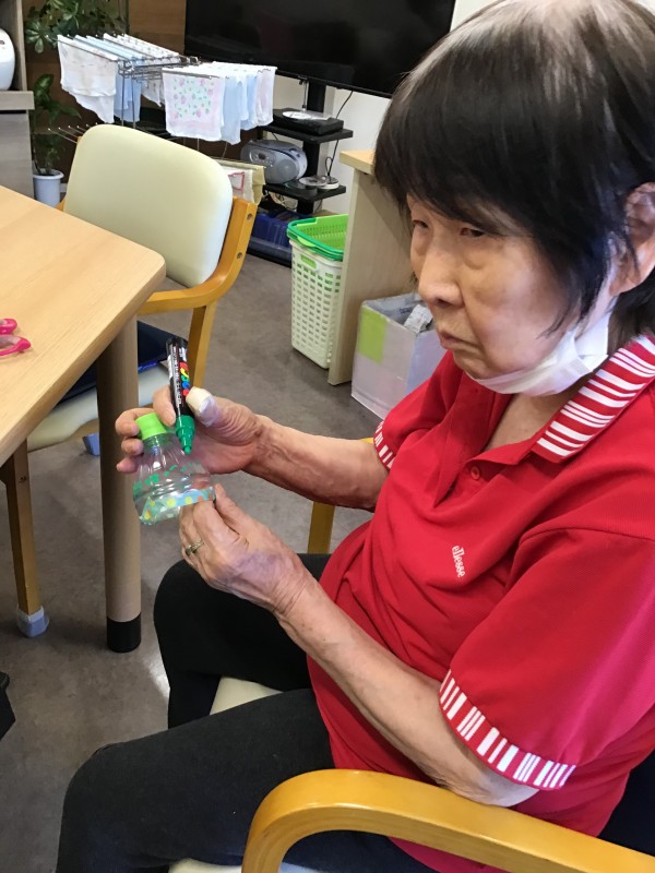 ペットボトルの上部を使ってマジックで模様を書いたり、