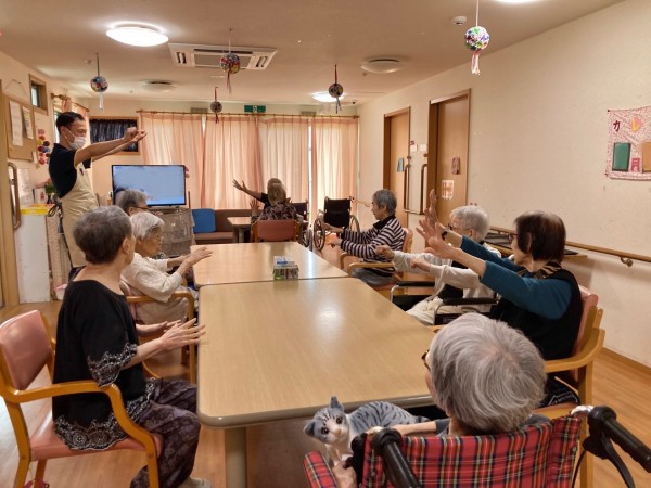 お食事前には、いつものようにしっかりと体操をして。
