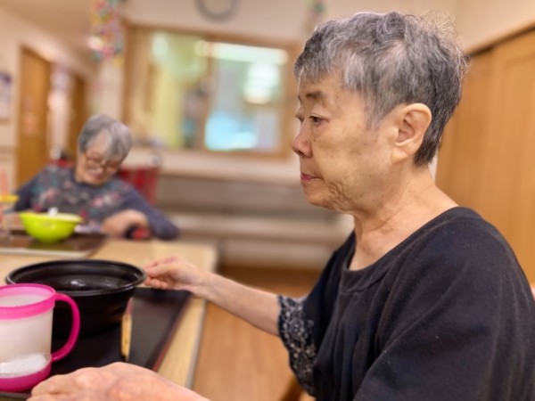 ケアスタッフが配膳をする間も美味しそうな匂いが広がり、皆様ソワソワとされています。