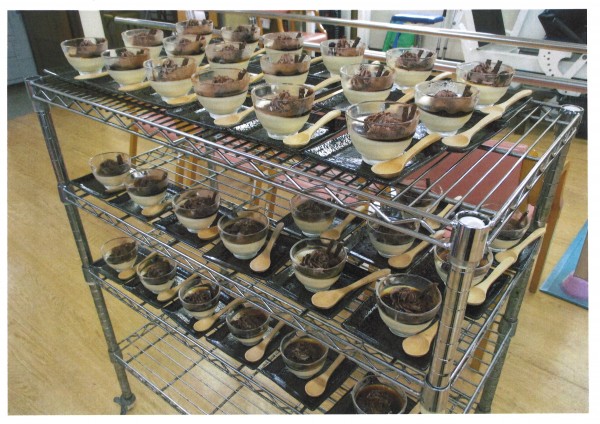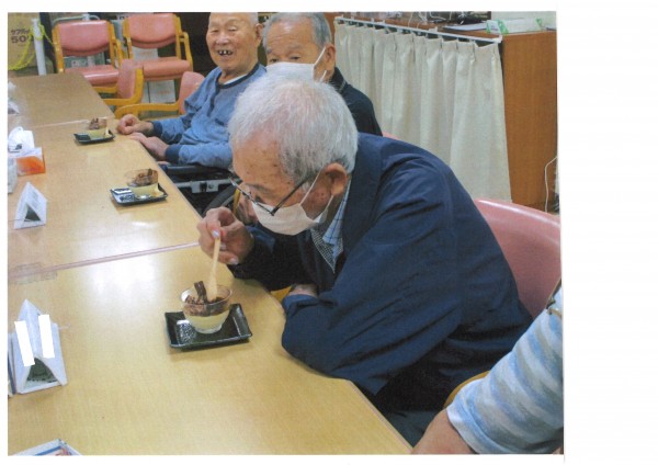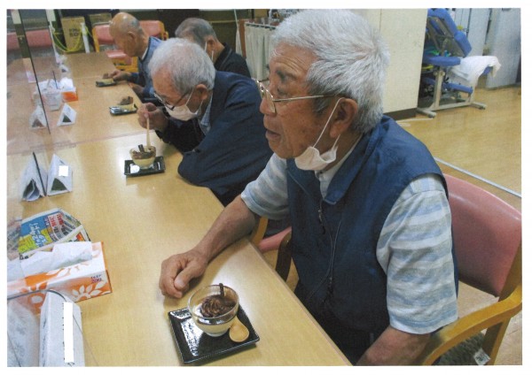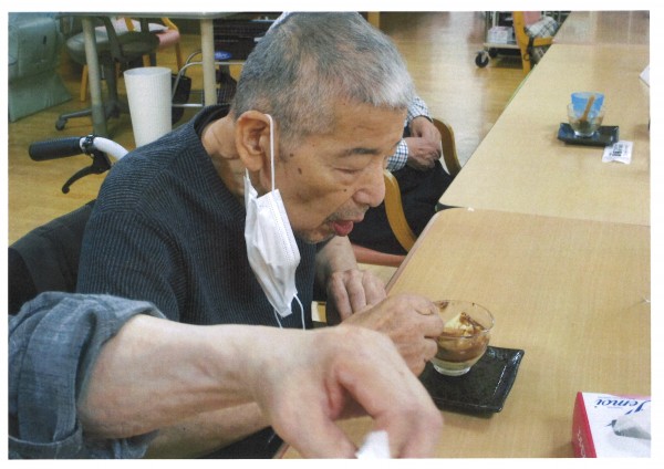 本日のおやつは【手作りプリン】月1回のお楽しみですね。今回のトッピングはチョコレートのホイップクリームとチョコ、ブルーベリーを添えました。ちょっとほろ苦い大人味のプリンです。今回もなかなか好評でした♪