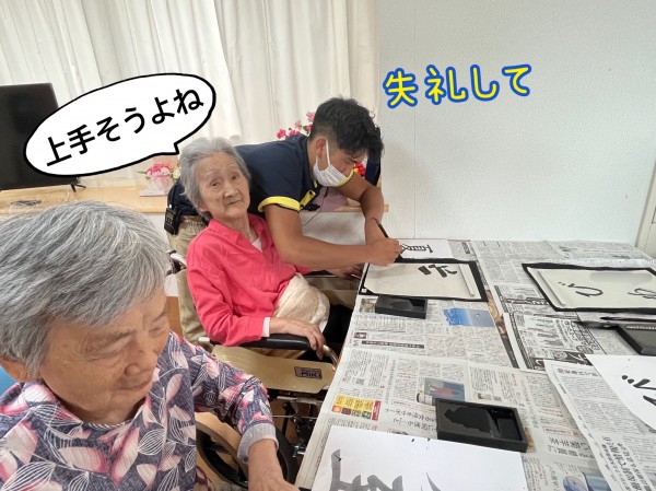 書道の時間も、お元気大将の登場で賑やかに楽しんく時間が過ぎていきます。