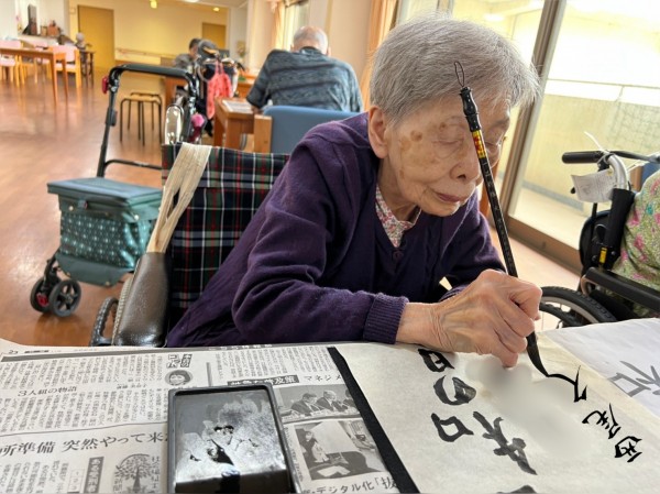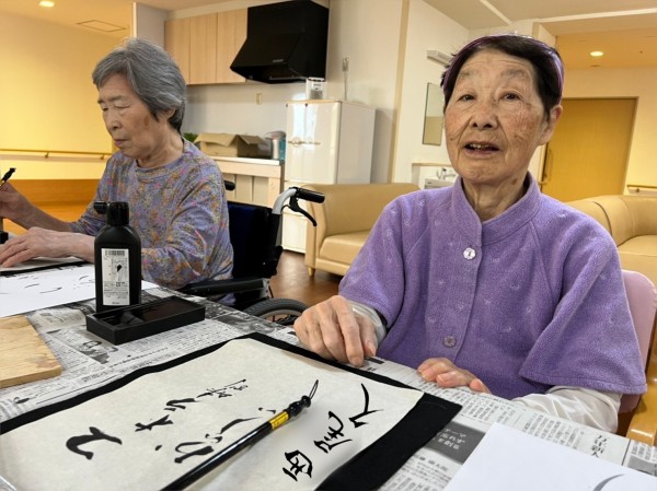 以前、書いたものに納得いってなかったらしく、また同じものを書いたリベンジ書道の入居者様。