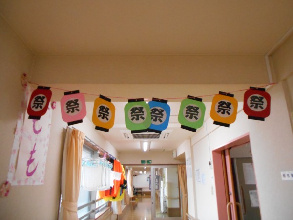 フロアや廊下に飾り付けもされ、盆踊りの音楽が流れ賑やかな雰囲気になりました♪