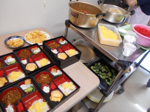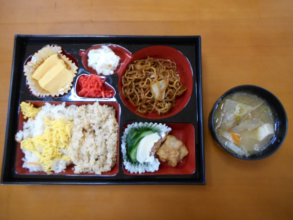 焼きそばや卵焼き、炊き込みご飯などとボリュームあるお弁当になりました(*^▽^*)