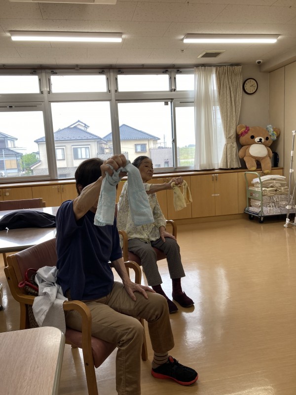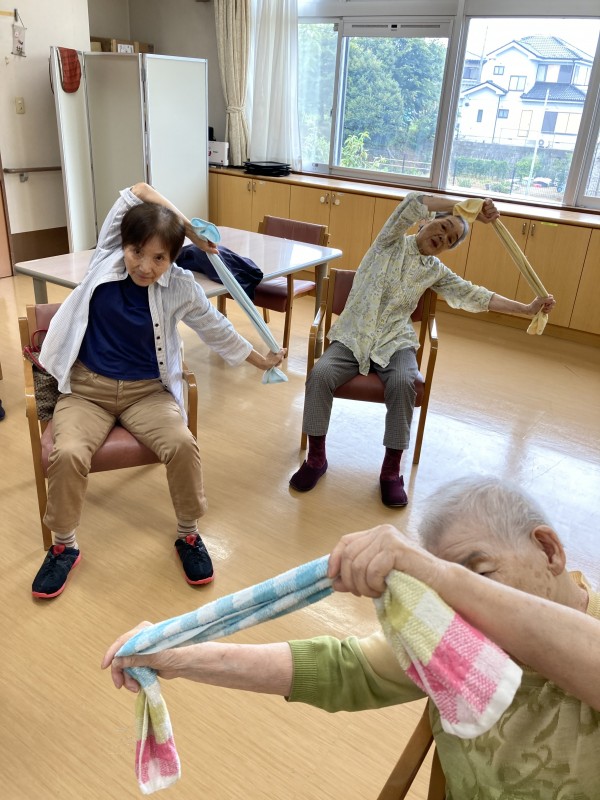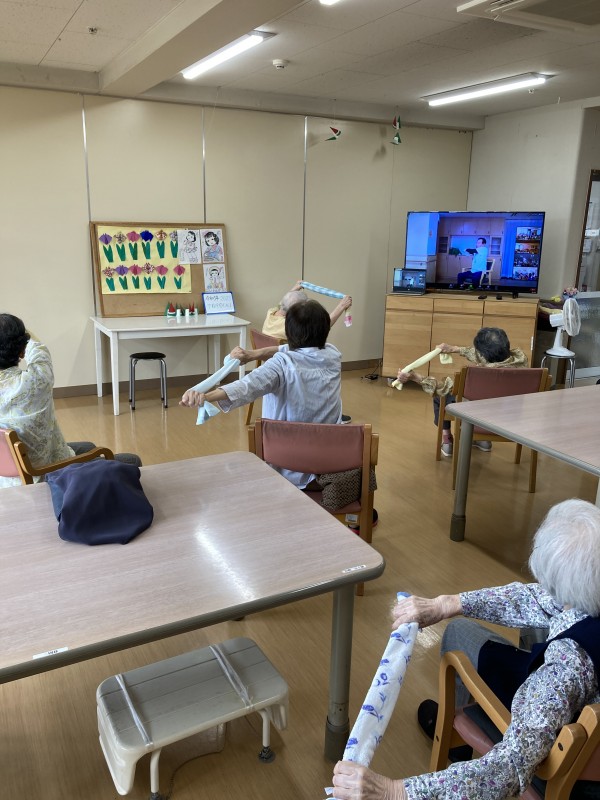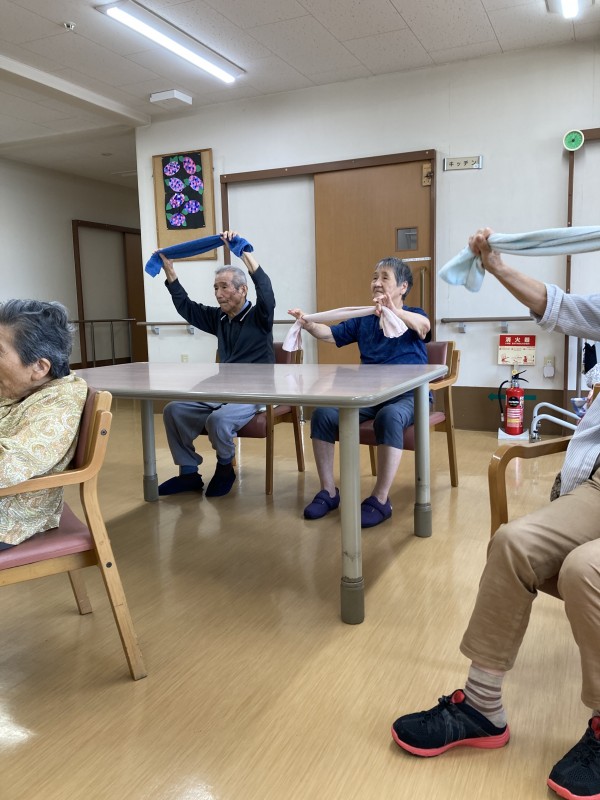 この日はリモートでタオル体操がありました。
