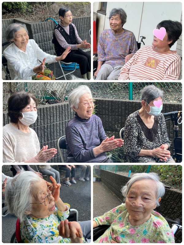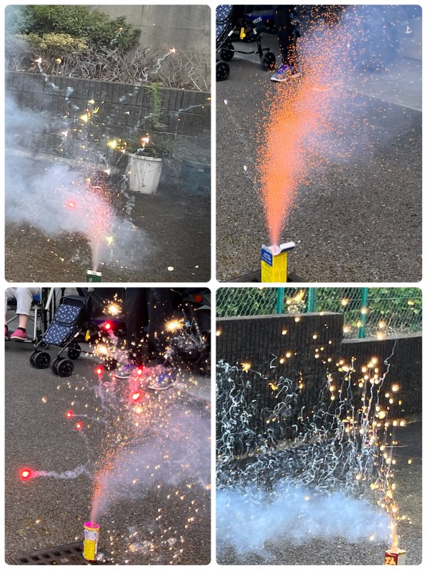最後の花火が上がり終わると、ご入居者様が「バンザーイ」を始めました。