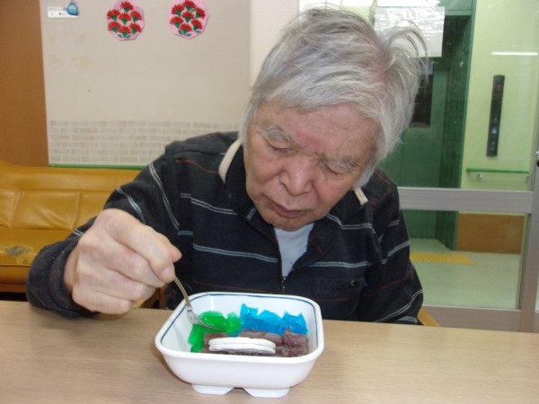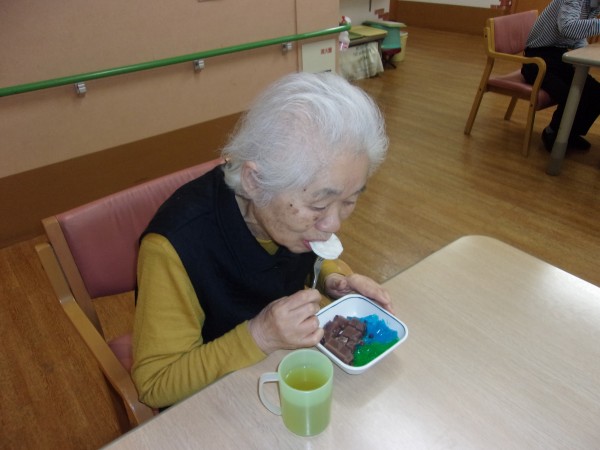 3階の七夕イベントの職員が作ったデザートを美味しく召し上がっています。