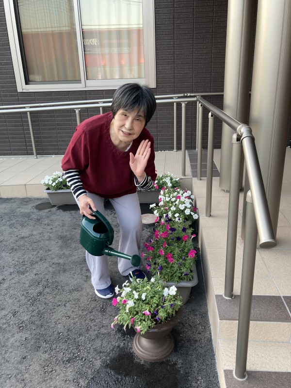 ヒマワリを作った後はお花に水をあげましょう♪キレイに咲いてね〜♡