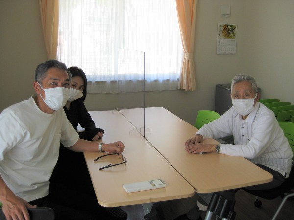 会議室での面会のご様子です( ^ω^)・・・ 楽しくお話しできたようでした! 嬉しそうに「ありがとう!」と喜ばれていました(*^。^*) 昨日息子が来てくれて「よろしく」と言っていましたと仰られました(^^♪) 来てくれて良かったですねとお伝えするとニコニコされて嬉しそうでした!!