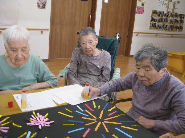 花火の貼り絵を行いました( ^ω^)・・・ 職員も一緒に貼っておられました!