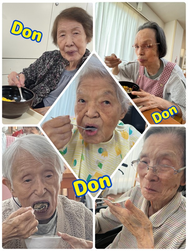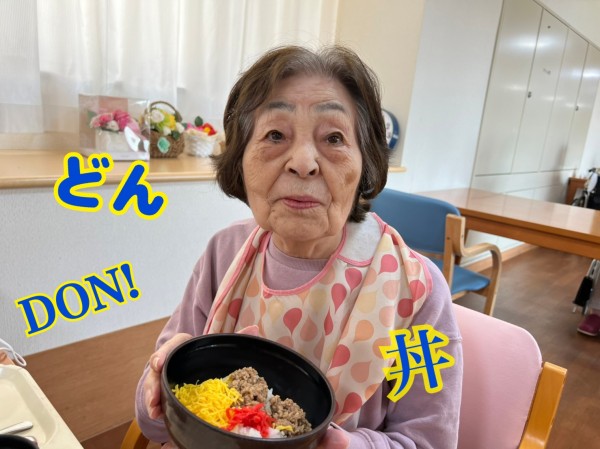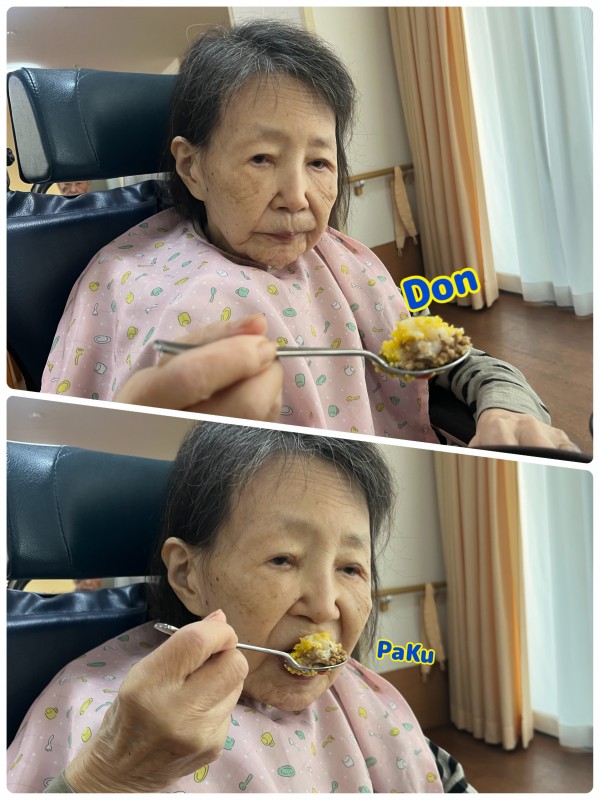 お食事をお出しすると「キレイだねぇ」と、ケアスタッフの石塚さんに釘付けになる入居者様。