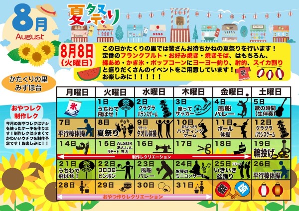 そんな暑い8月のレクカレンダーです!
