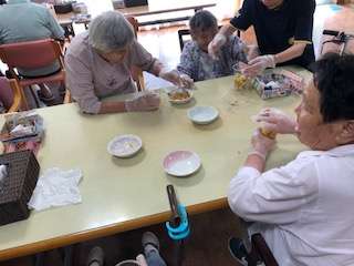 今日のレクリエーションはおやつを手作り☆