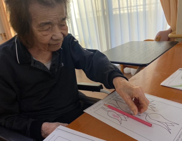 自分の好みの色を選び、枠の中をはみ出さないように塗る。隣り合う色の配色も考えてみたり。