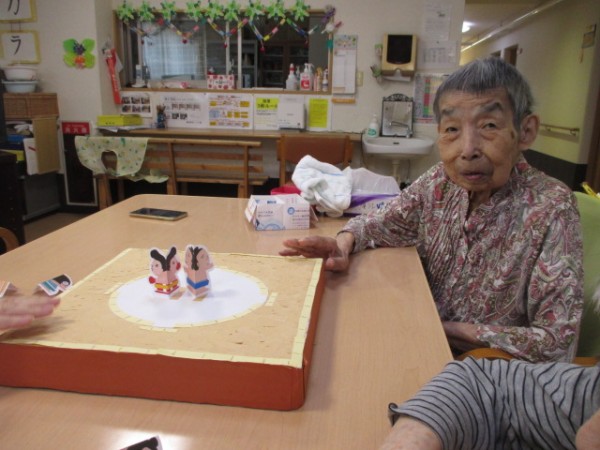 今回も飯嶋職員の力作「紙相撲セット」。