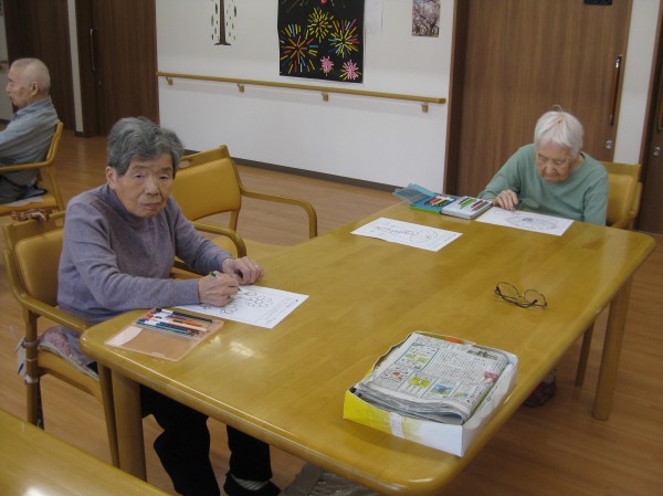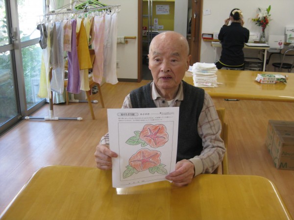 塗り絵を行っているご様子です( ^ω^)・・・ 何を塗っているのでしょうか? 出来上がりが楽しみですね(^^♪)
