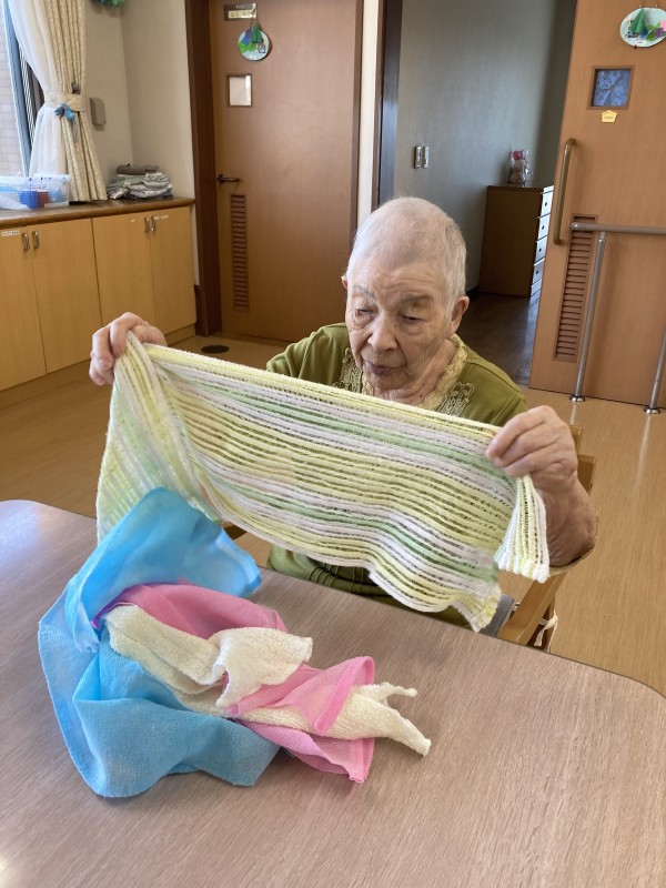 今日の午後、ご入居者様に洗濯物を畳んでいただきました。長年主婦として家庭を支えていた方々ばかりですので、手際よく丁寧に畳んでいただきました。