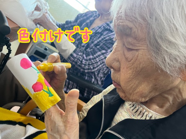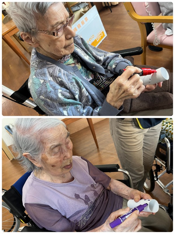 「目が悪いから上手く描けないよ」と仰る時には、職員が下書きをします。