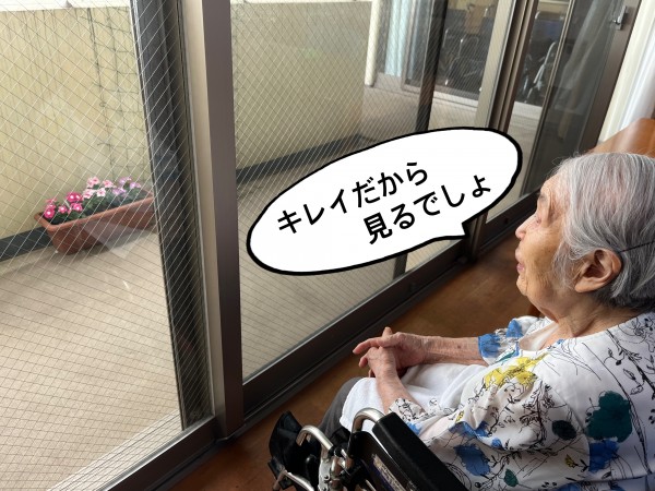 何かあるかもしれない、何もなくても声をかけて行く事で、今日もお元気なんだと確認でき、こんな笑顔を見せてくださるのです。