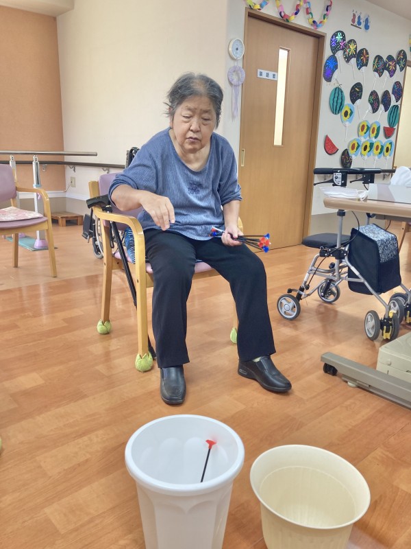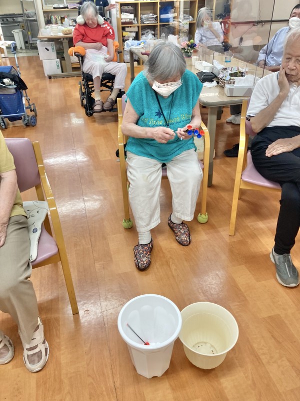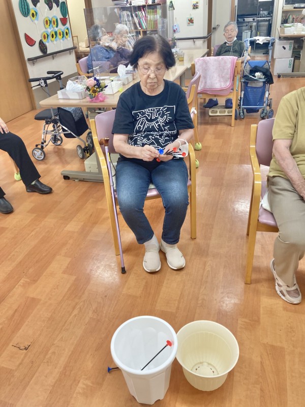 壺に見立てた入れ物に、矢を投げ込むシンプルなゲームです。