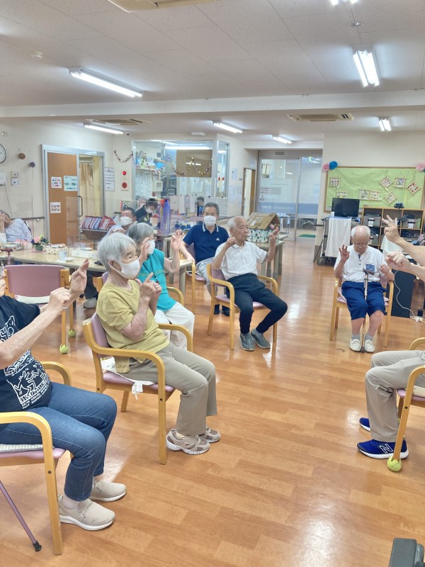 運動を10分位しっかり体を動かした後、3曲歌を皆で歌いました。