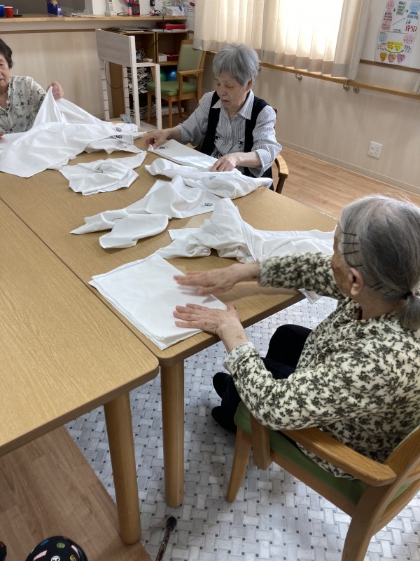 今日も元気に歌を歌ったり、枕カバーを折り畳んで頂いたり♪