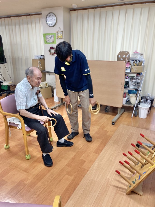 1人9投投げて、輪投げ台にある点数の合計点で順位決めました。